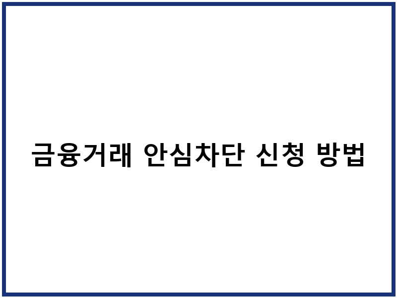 금융거래 안심차단 서비스는 소중한 자산을 지키는 강력한 수단입니다. 지금 바로 신청하여 금융 사기 피해를 예방하시기 바랍니다.