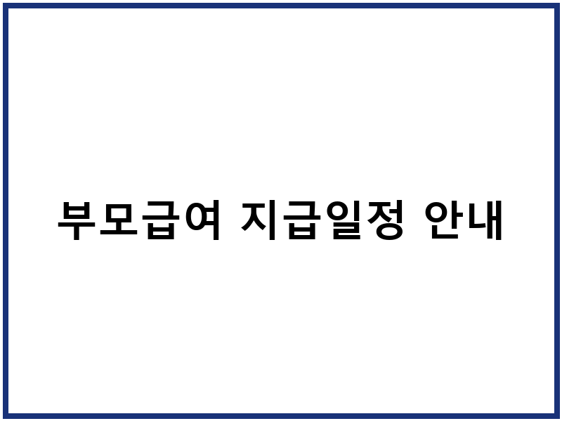 부모급여 지급일정은 모든 부모님들에게 중요한 정보입니다. 매달 25일에 지급되는 부모급여를 통해 육아 부담을 덜고 안정적인 양육 환경을 조성하는 데 도움을 받을 수 있습니다. 부모급여 지급일정에 대한 정확한 이해는 현명한 소비 계획으로 이어집니다.