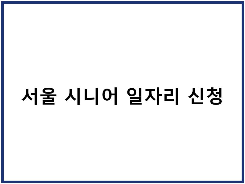 서울 시니어 일자리 신청 방법