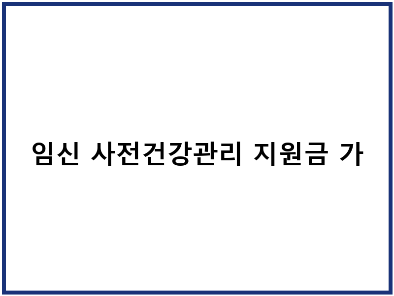 임신 사전건강관리 지원금을 놓치면 안 되는 이유
