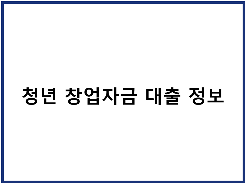 청년 창업자금 대출 조건