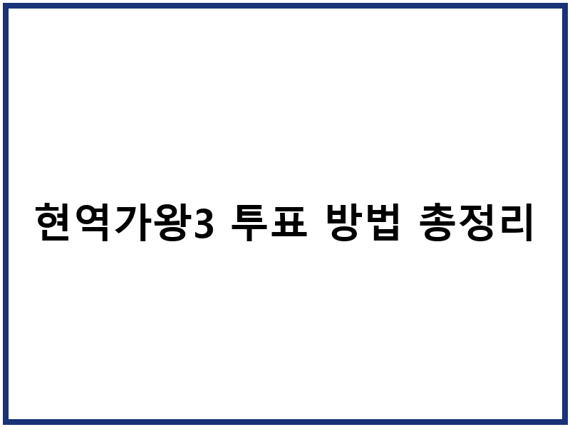 현역가왕3의 국민 참여 투표는 프로그램의 재미를 더하는 중요한 요소입니다. 시청자 여러분의 소중한 한 표가 가수들의 순위에 직접적인 영향을 미치므로, 정확한 투표 방법을 숙지하는 것이 필수적입니다. 본 안내를 통해 투표 절차, 참여 가능 시간, 횟수 및 자주 발생하는 실수를 방지하는 방법을 상세히 알려드립니다.