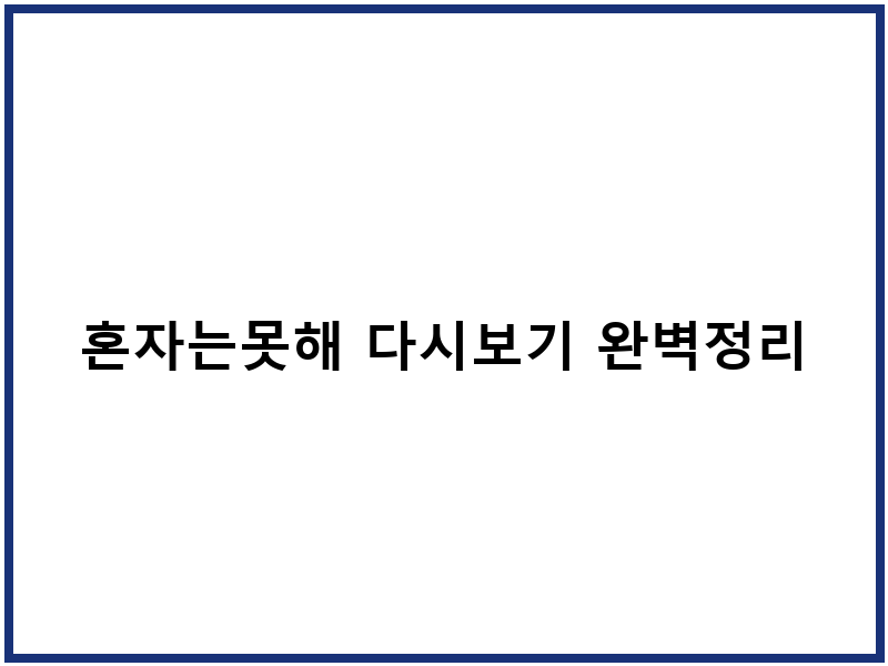 JTBC 예능 ‘혼자는못해’를 다시 보고 싶으신가요? 본방송 및 재방송 시간, OTT 서비스에서 시청 가능한 곳, 그리고 무료로 즐길 수 있는 방법까지 한눈에 정리해 드립니다. 번거로운 검색 없이 바로 시청하세요.