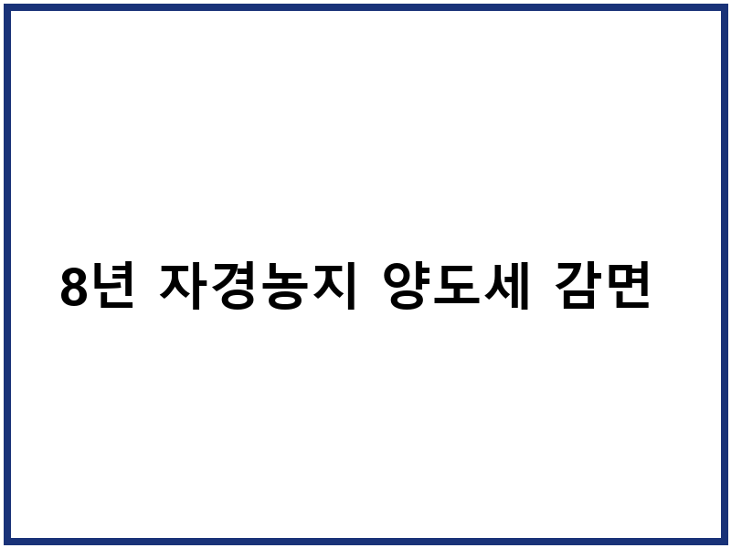 8년 자경농지 양도세 감면의 필수 조건