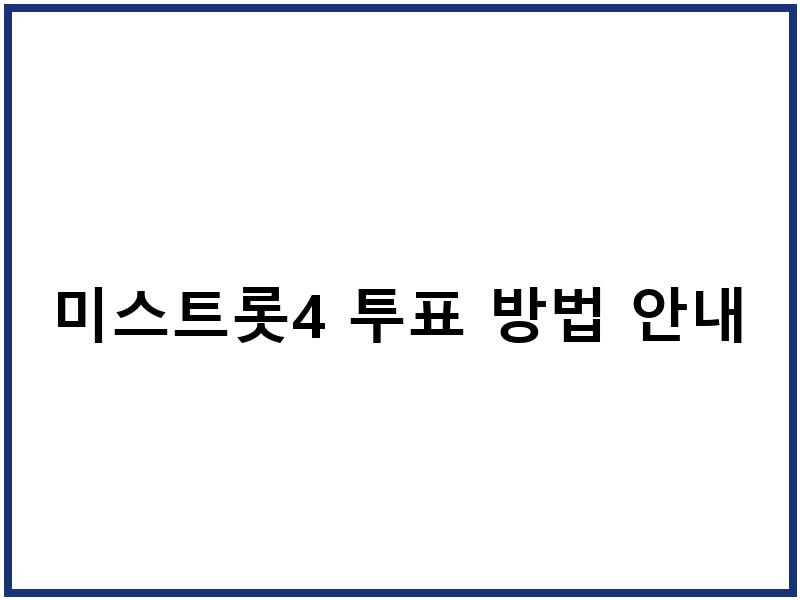 2026년 미스트롯4 투표 방법을 찾고 계신가요? 투표 버튼 위치를 몰라 헤매는 분들을 위해 상세한 안내를 제공합니다. 복잡한 투표 절차를 한눈에 파악하고 쉽게 참여할 수 있도록 모든 정보를 담았습니다. 미스트롯4 투표 참여 절차 미스트롯4 투표는 간단한 몇 단계를 거쳐 진행됩니다. 본인 인증 후 원하는 참가자에게 투표할 수 있습니다. 아래 표를 통해 주요 참여 과정을 확인하세요. 구분 … 더 읽기